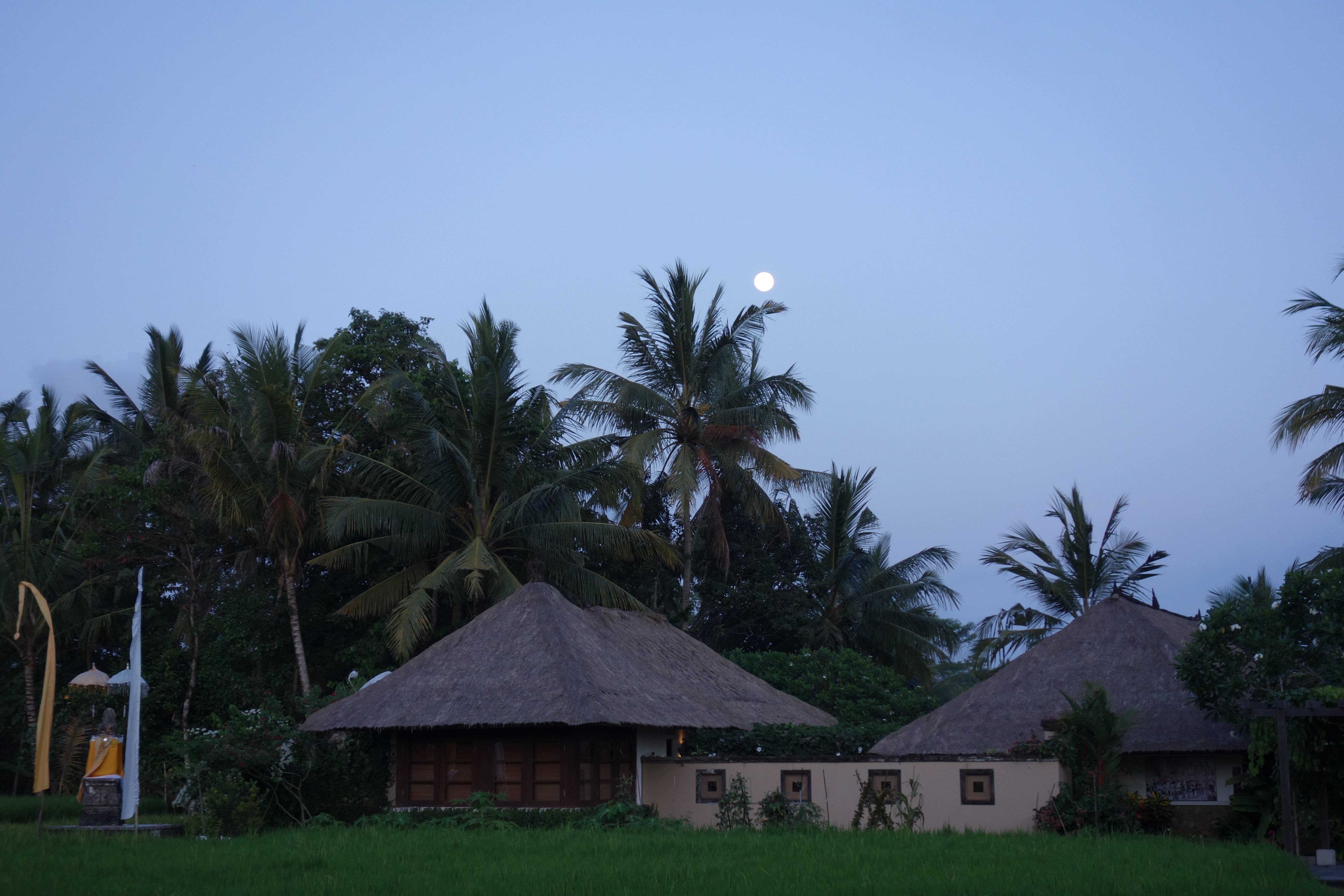 I returned to a sanctuary that was even more remote from town. It was up among the hills, jungles and rice fields. Despite the occasional bits of business that I had to grapple with; and despite the sounds of construction from the opposite ridge, on the whole I basked in quiet, many a sunrise, an eclipse and the warmth and company of two friends and their dogs.