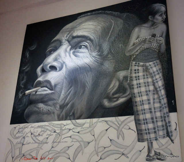 It dawned on me that this was just the 2nd time I’d attended an opening in or around Ubud, where the displayed artworks marked a stark departure from the classical Balinese style of painting. Nearly everything about them – subject matter, brushstrokes, brightness, intensity of feeling – seemed to betray what the Balinese (and other Indonesians, because surely there were a few non-Balinese among them) have created, re-created, marketed, hawked and established as their signature style over decades.