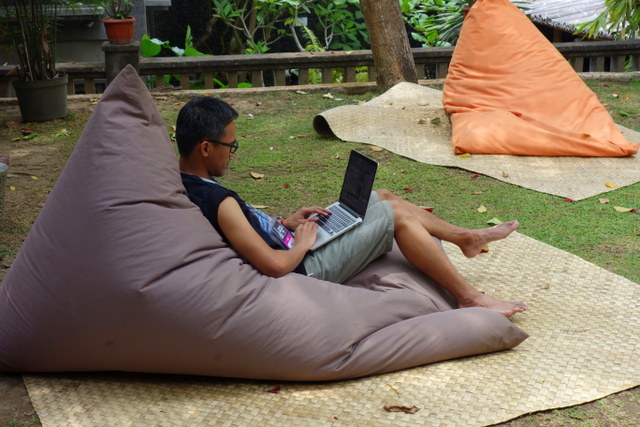 Where else but in Ubud might you find a co-working hub that keeps an air rifle handy, lying in plain sight and undisturbed on a work-table? No worries, it’s just for the monkeys, they say. And there it stays u
