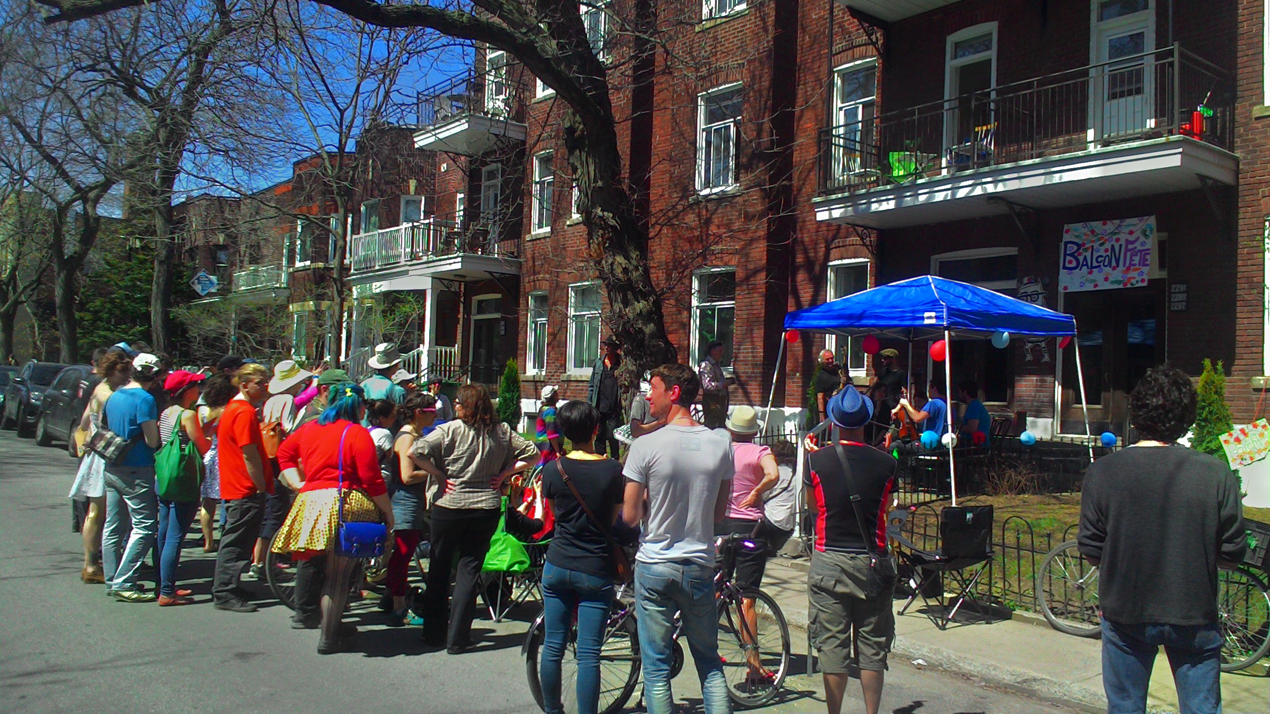the inaugural Porchfest –when the balconies, terraces, lawns and alleyways of a neighborhood known as NDG were collectively transformed into a massive outdoor concert venue. Local musicians and singers signed up to perform in one-hour chunks at a time. Musical styles ranged from jazz and folk to bluegrass and acoustic. Neighbors, friends, kids and dogs came out in full force. It was the best and biggest block(s) party I’ve ever witnessed. And this was just a trial run. Wait till next year…