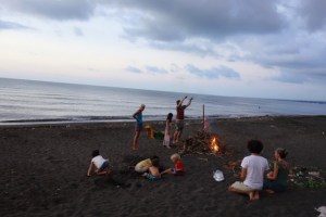 Somewhere on the north coast of Bali, some friends – adults, children and a newborn baby – met up to eat, swim and build a bonfire.