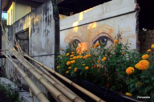 Indeed, there’s been a heightened buzz around Ubud the past few days. Motorbikes speed by with large plastic bags filled with decorations. Females of all ages have been gathering gargantuan bags of petals, layering them into hundreds of offerings in dozens of baskets. Chickens seem to be flying through the air at low altitude, hanging by a rope off a handlebar. Pigs have been fattened up in time for slaughter and lawar-making in the wee hours of Galungan day. There’s even a shopping frenzy as the Balinese stock up on new clothes, jewelry, sandals and flip-flops. I’ve even seen queues outside barber shops.