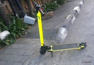 Other questions came up: How and where was I supposed to park the Rat? I tried nudging it onto sidewalks and into shops and cafés; but it was super awkward: the foot-board would pivot on its hinge this way and that (bruising my foot just above the ankle in the process). The charger never fully charged the battery. I had to lean on my front (right) leg all the time, so that my left foot could hover above the back wheel – above which was positioned the brake… resulting in a slightly aching hip. This lean machine was sweet and spunky-looking, but also incredibly clackety: I was shaking like a leaf whenever I tried navigating down many of Sanur’s main or side roads. The beach promenade was out of the question – too much clickety-clack riding over paving stones.