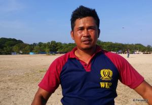 It was an altogether unbelievable and sobering sight. Staff and WBP, scattered around the massive field that is also Mertasari beach; pulling, hoisting, untangling, shouting, laughing, watching. Alongside groups of Balinese youth, hoisting their own but in awe of the outsized striped creature.