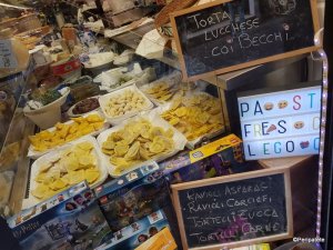 With renovations in full swing at the hostel, the caretaker led us to a neighboring apartment – where a young, monolingual, Florentine who was staying at the same facility, served up a pot of pasta for our trio; as he slowly shared his numbness and grief over a friend’s recent death. Understandably, his food was dry and tasteless; and nowhere near as edible as the culinary delights we’d dined on earlier at the nearby bottega, when a feisty shop-owner named Luana dished up a 3-course pilgrim’s menu.